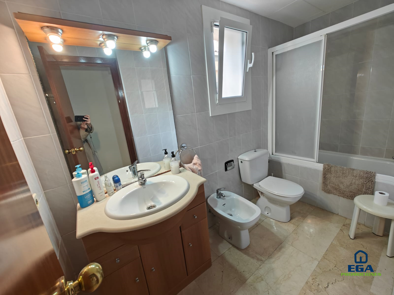Baño amplio con bañera y mampara